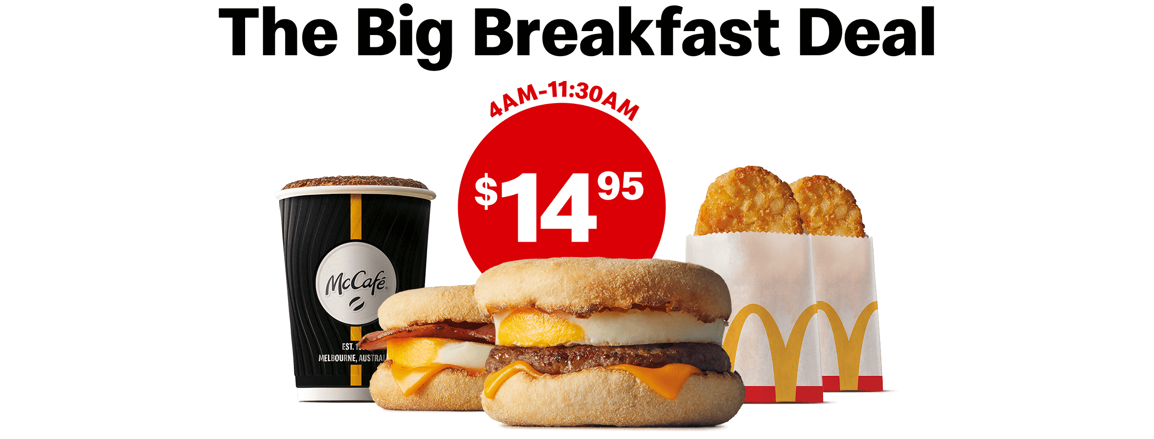 Available 4am to 11:30am for a limited time at participating restaurants. Serving suggestion. Extra charges apply for Mocha, soy, syrups and other variations. Excludes McDelivery®.