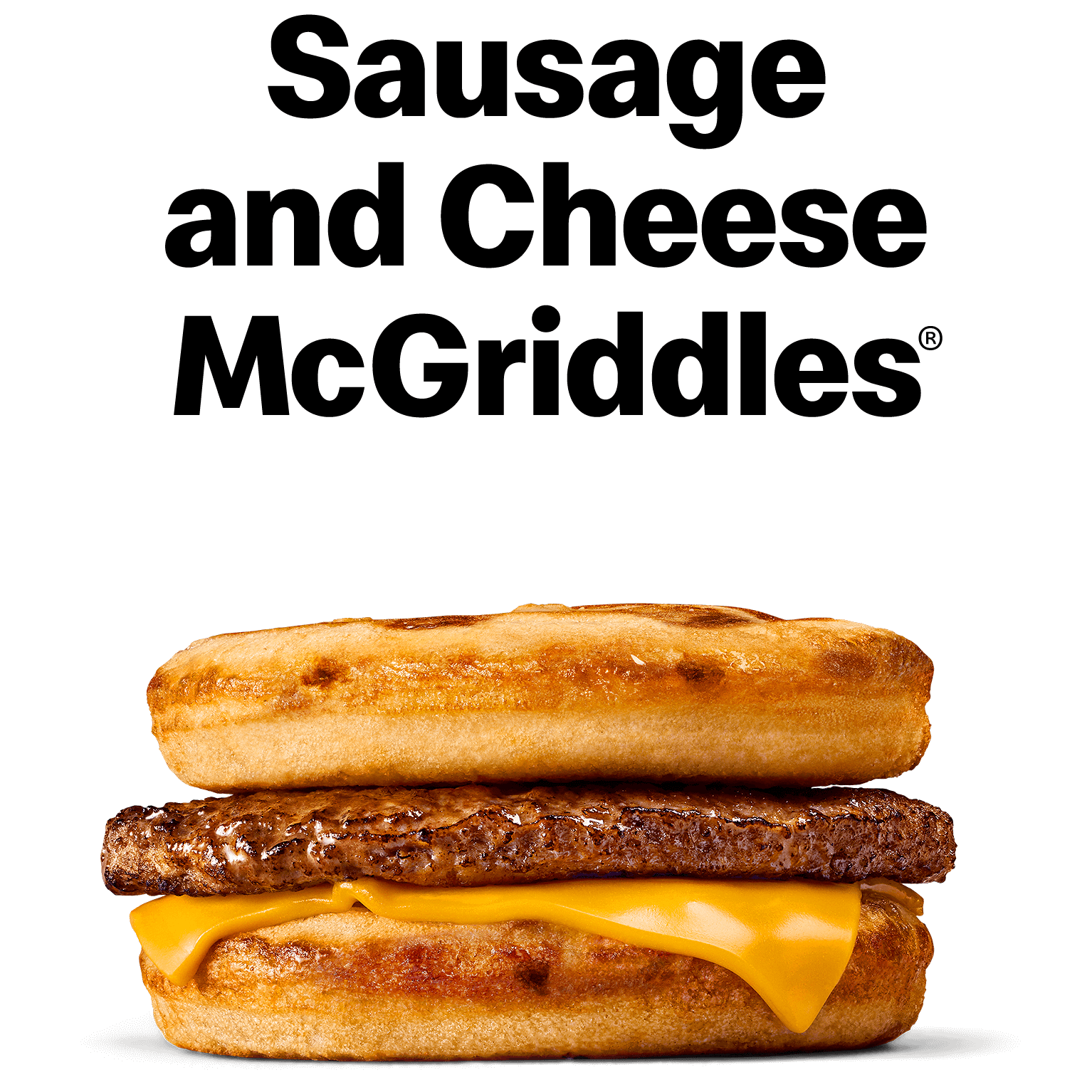 Macca’s iconic beef sausage patty and melty cheese between two soft, warm maple infused pancakes.